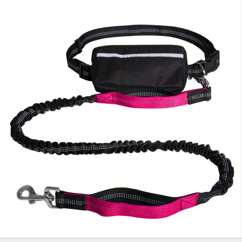 Hands-free retractable dog leash with reflective nylon. Includes fanny pack for essentials. Available in multiple colors. Free shipping from PetsRoyalPalace.com.